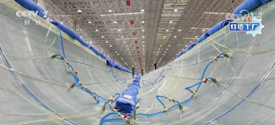 正在当前风机大型化趋向下,叶片的长度敏捷冲破百米。除了出产速度快,还要强度高、分量轻、出产误差要小。材料、工艺的严苛,也对这家叶片工场从“制制”向“智制”转型提出更高要求。